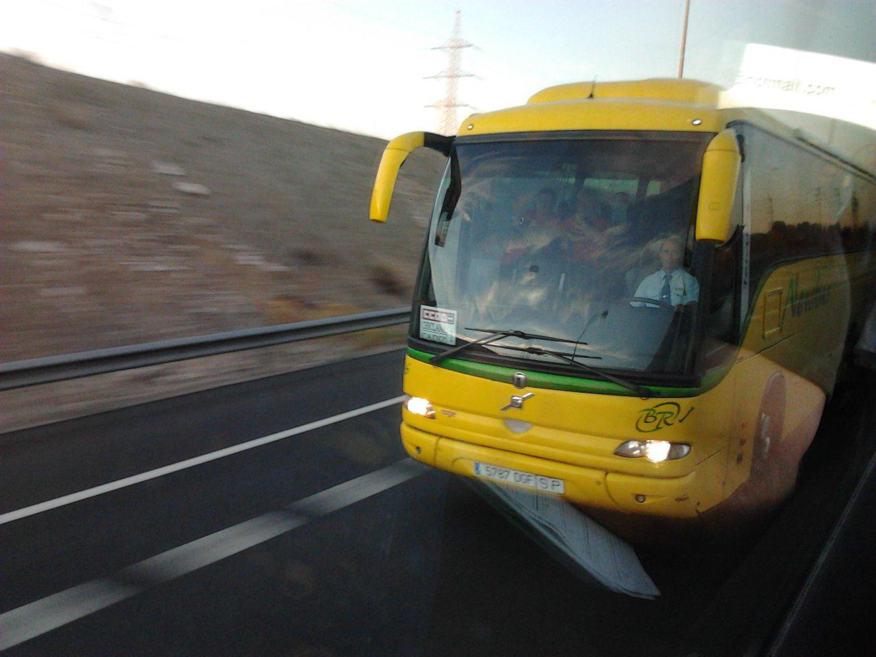 | En la Carretera, uno de los treinta y cinco autobuses que fletó CCOO, desde Cádiz. |