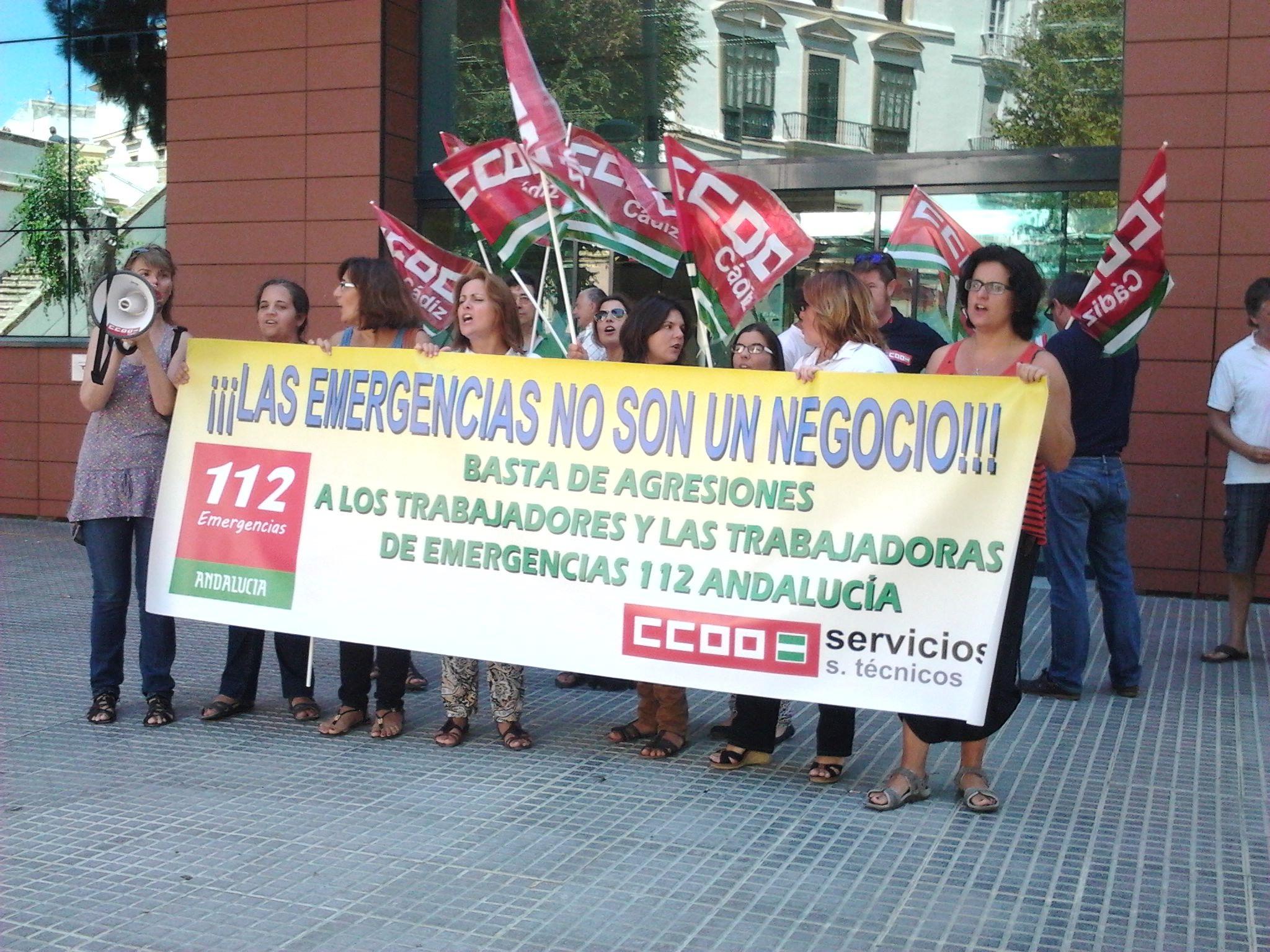 En la calle, en la entrada de la Delegación, CCOOJusticiaCádiz se ha sumado a la concentración y reivindicaciones de la Plantilla de Emergencias del  112.